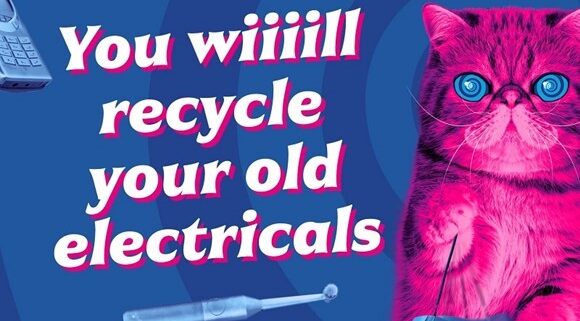 HypnoCat, the Recycle Your Electricals pink fluffy cat, will be hypnotising residents to recycle their electricals and he will appear in social media advertising across Northampton. The project will encourage residents to recycle small domestic electrical items, including toasters, kettles, sandwich makers, hairdryers, irons and other items alongside their household collections. Small items of waste electrical equipment, which will fit inside a carrier bag should be placed on top of your domestic waste bin as follows: